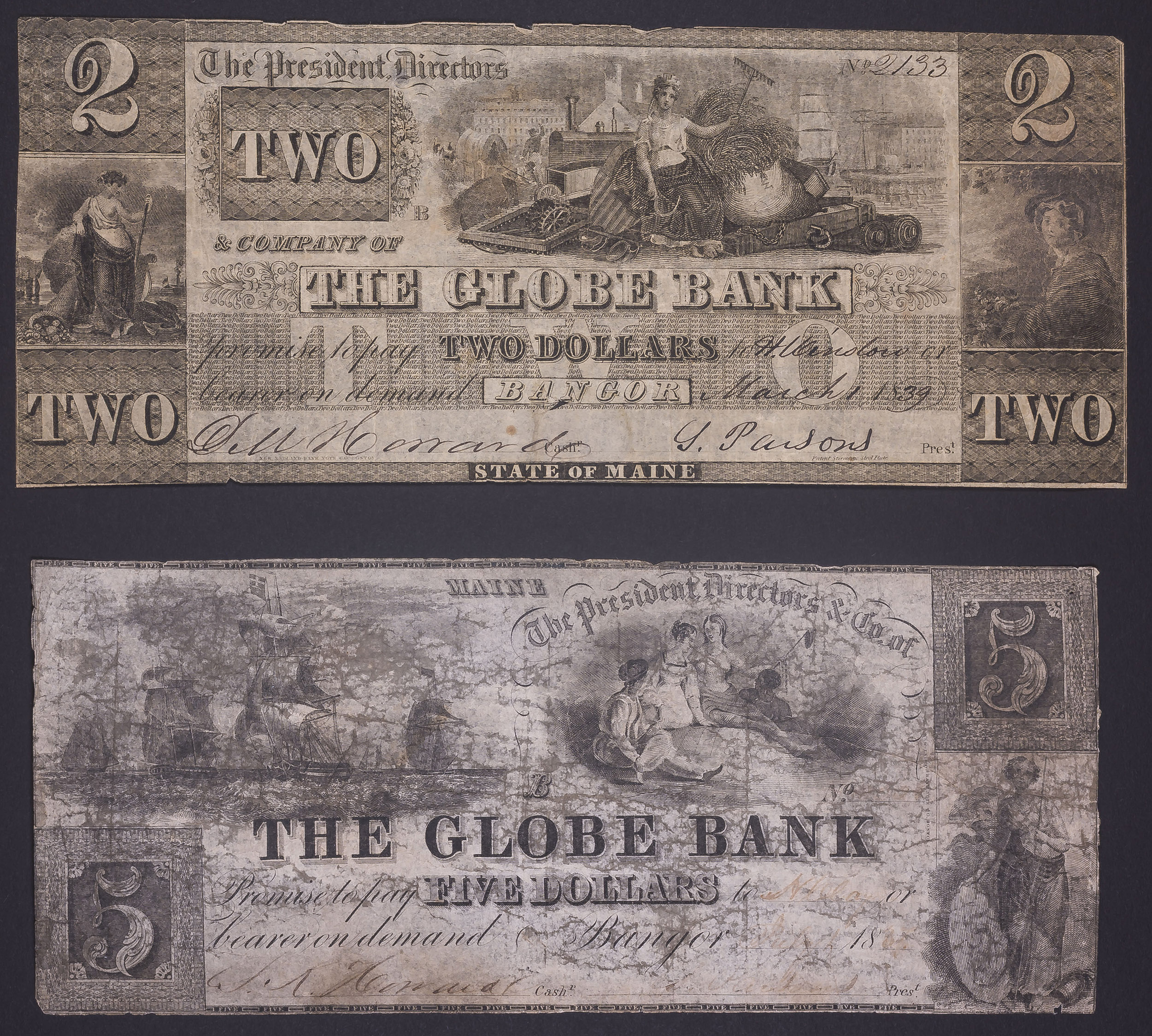Maine. Bangor. Globe Bank $2 & $5 Pair