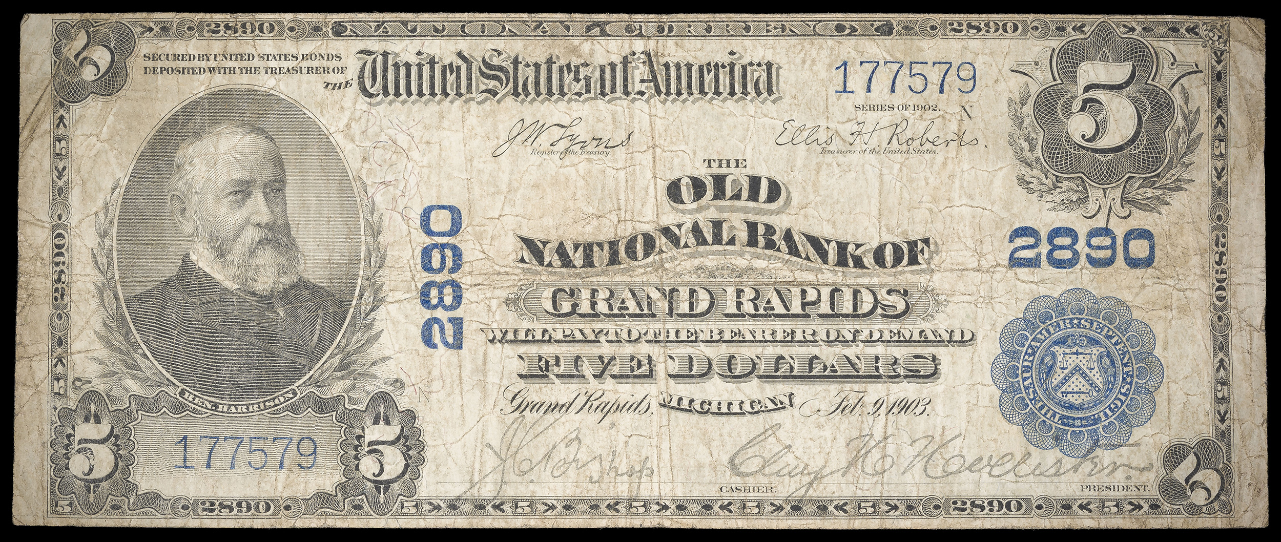 F-VF 1902 Grand Rapids MI $5 National