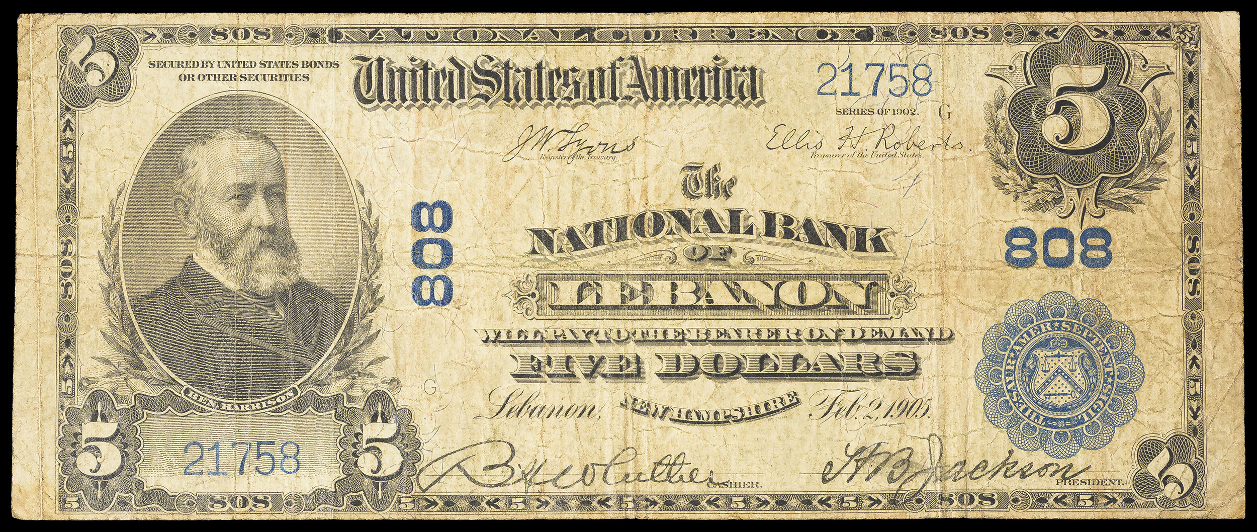 F-VF 1902 Lebanon NH $5 National