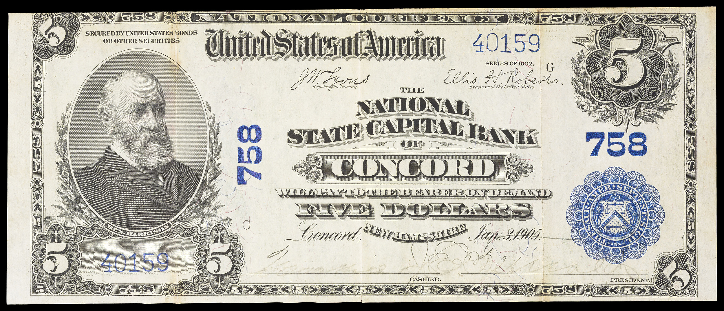 VF-EF 1902 Concord NH $5 National