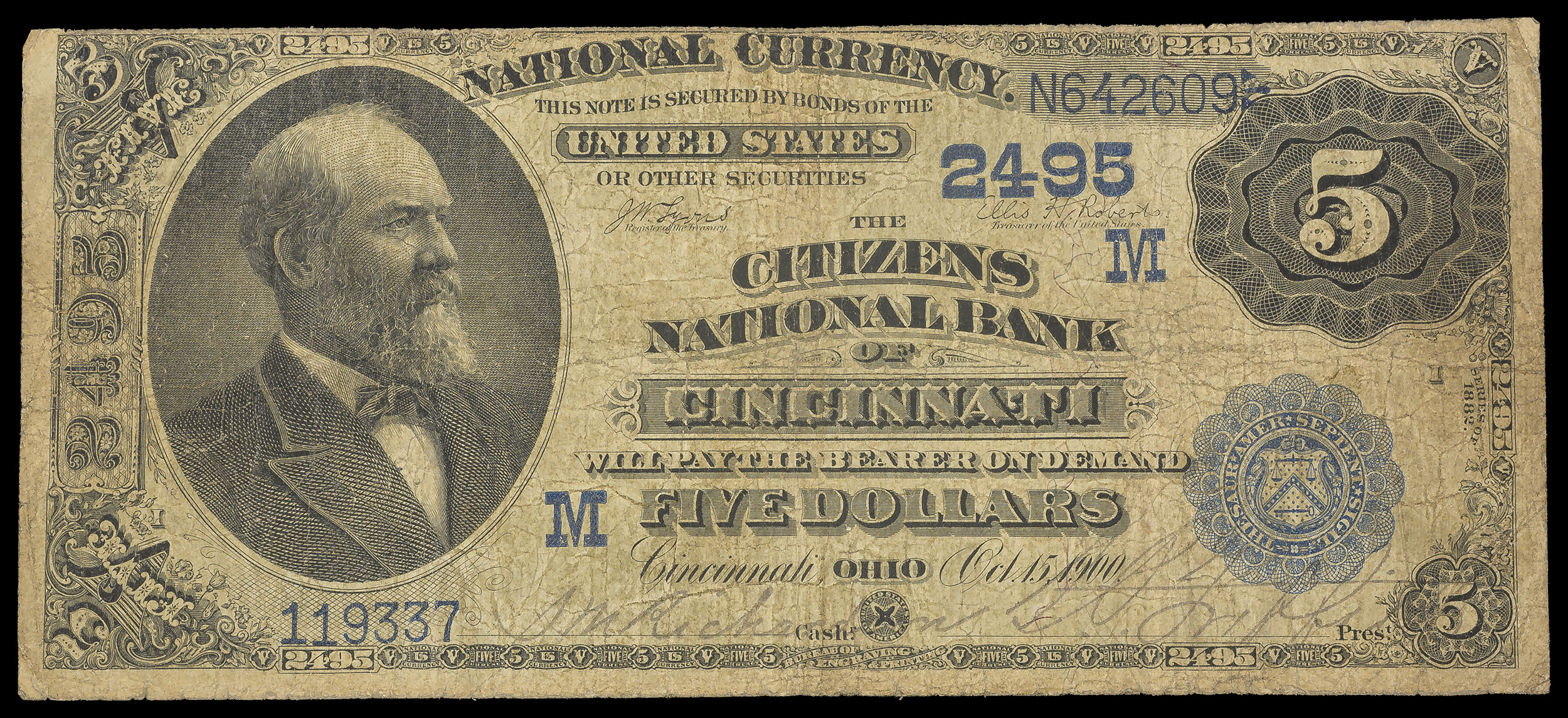 Fine 1882 $5 Cincinnati OH National