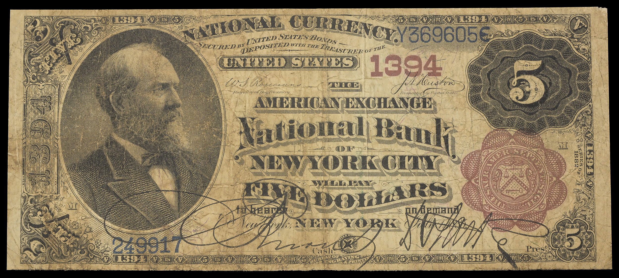 F-VF 1882 $5 New York NY National