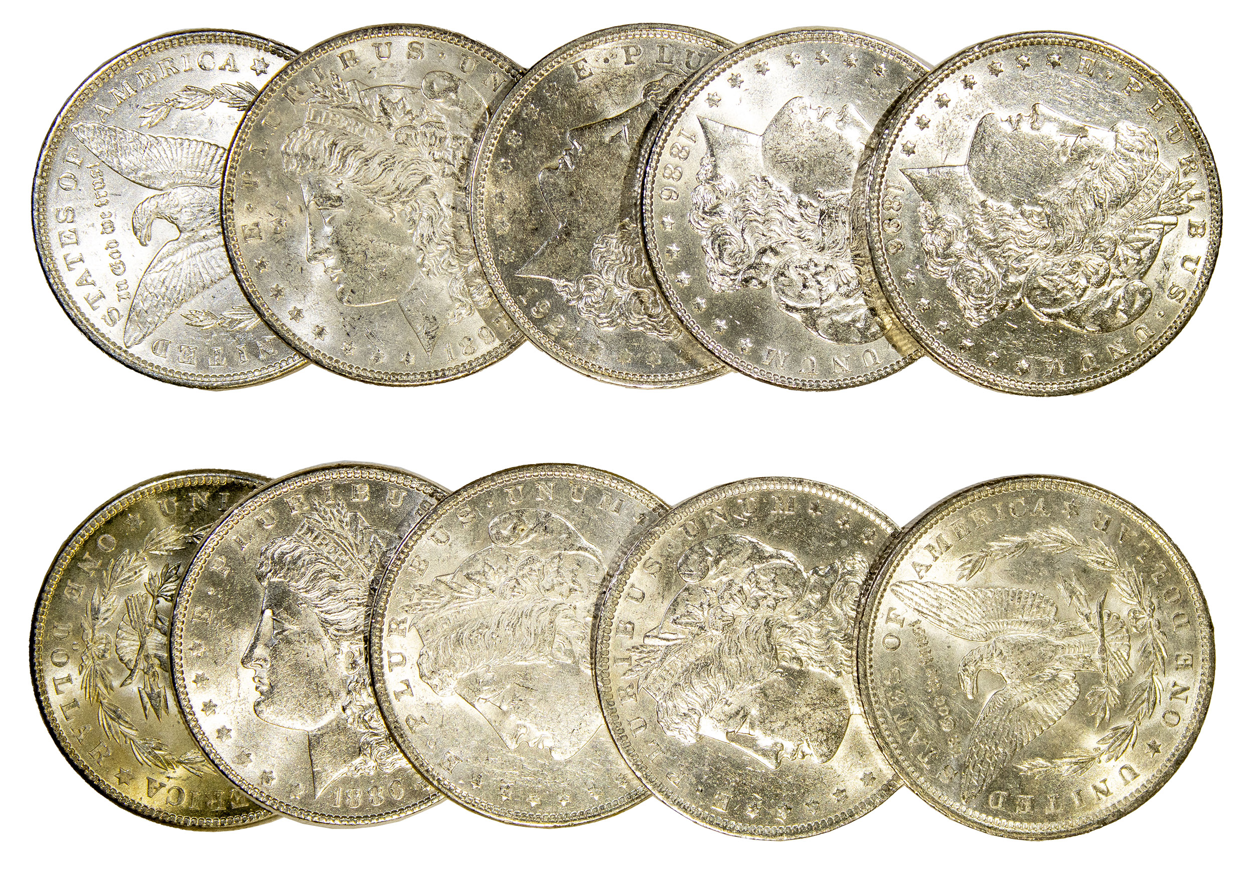 Ten Mixed Date AU-BU Morgan Dollars