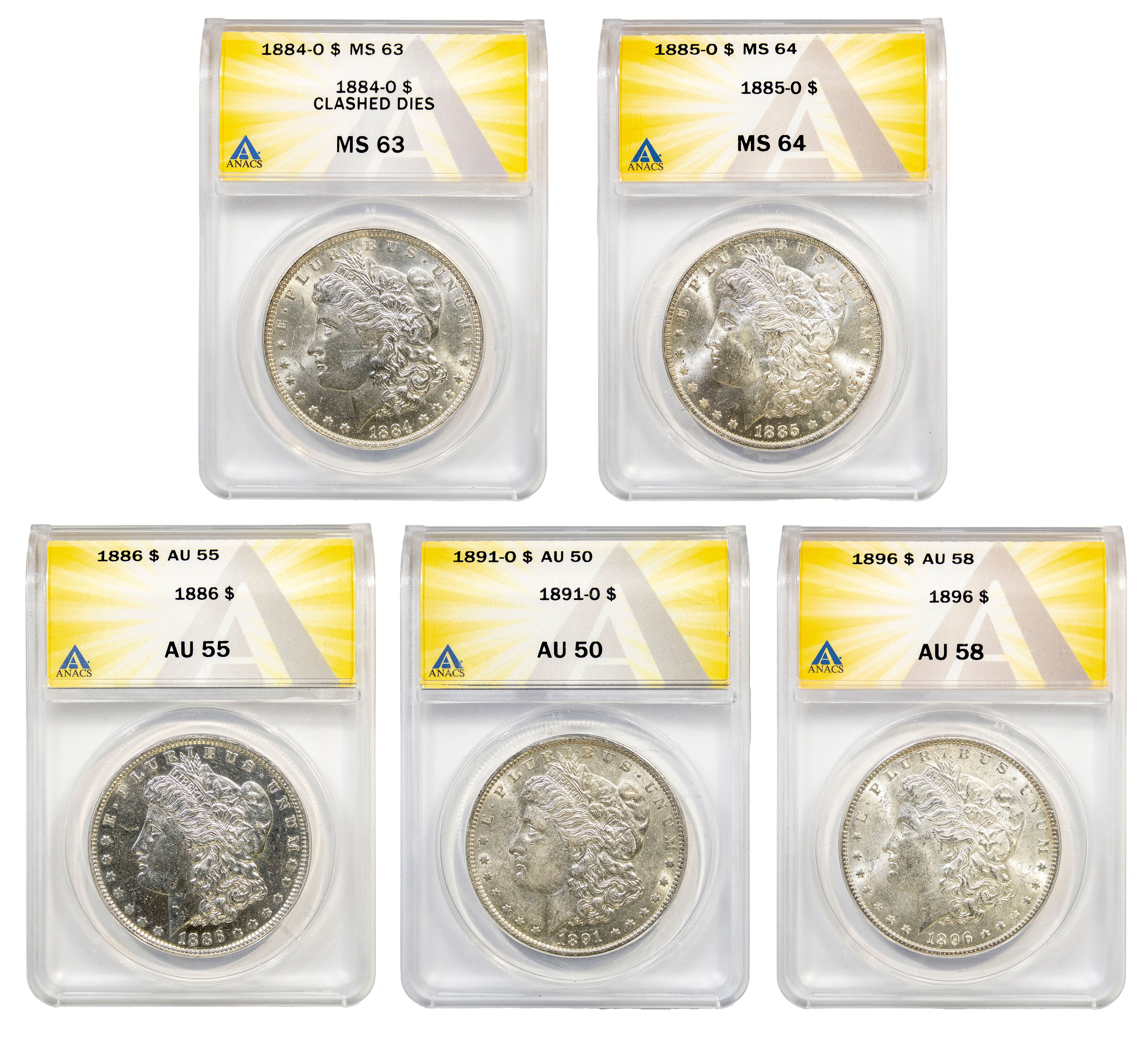 ANACS-Certified Morgan Dollar Quintet