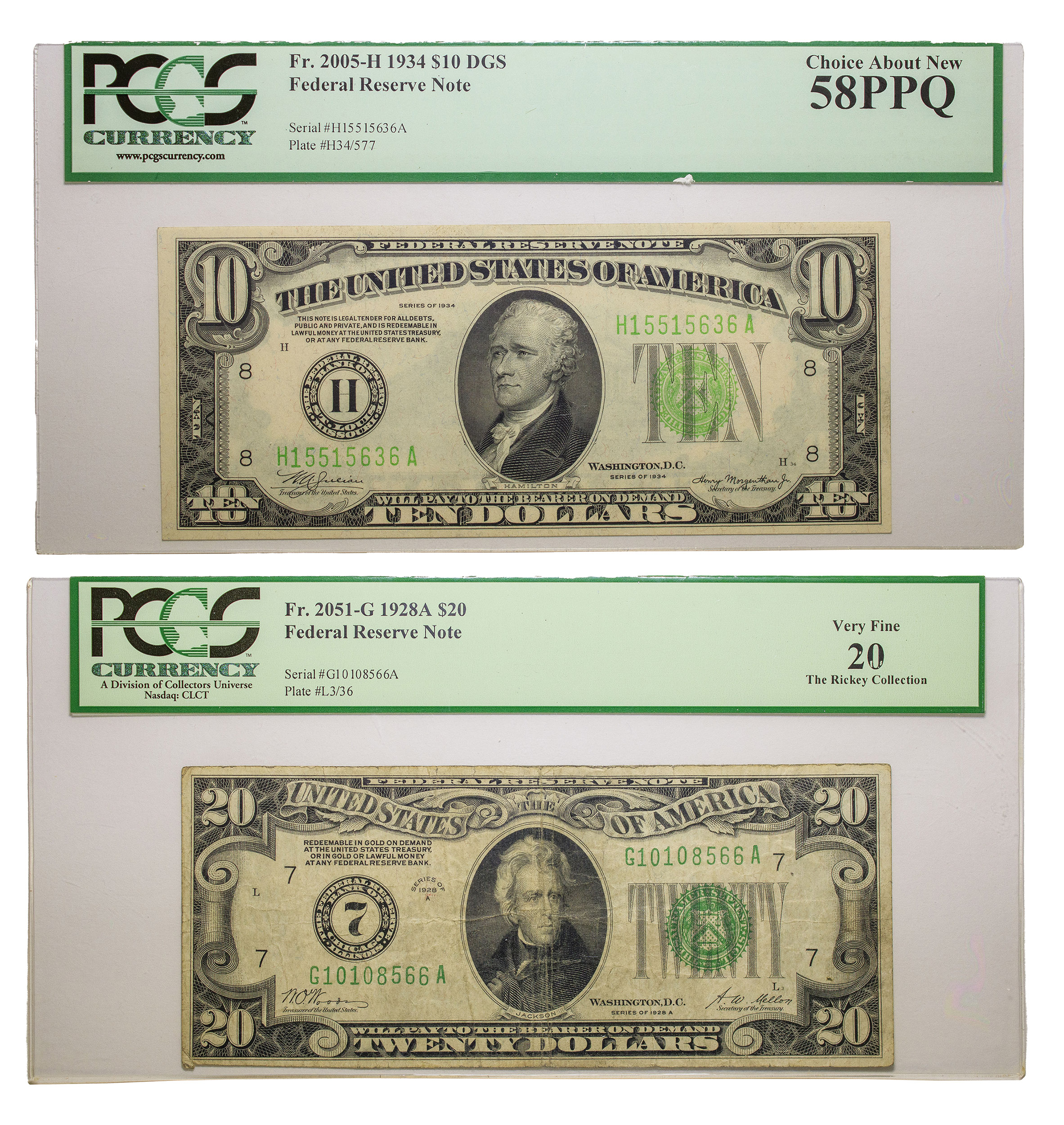 PCGS Certified $10 & $20 Pair